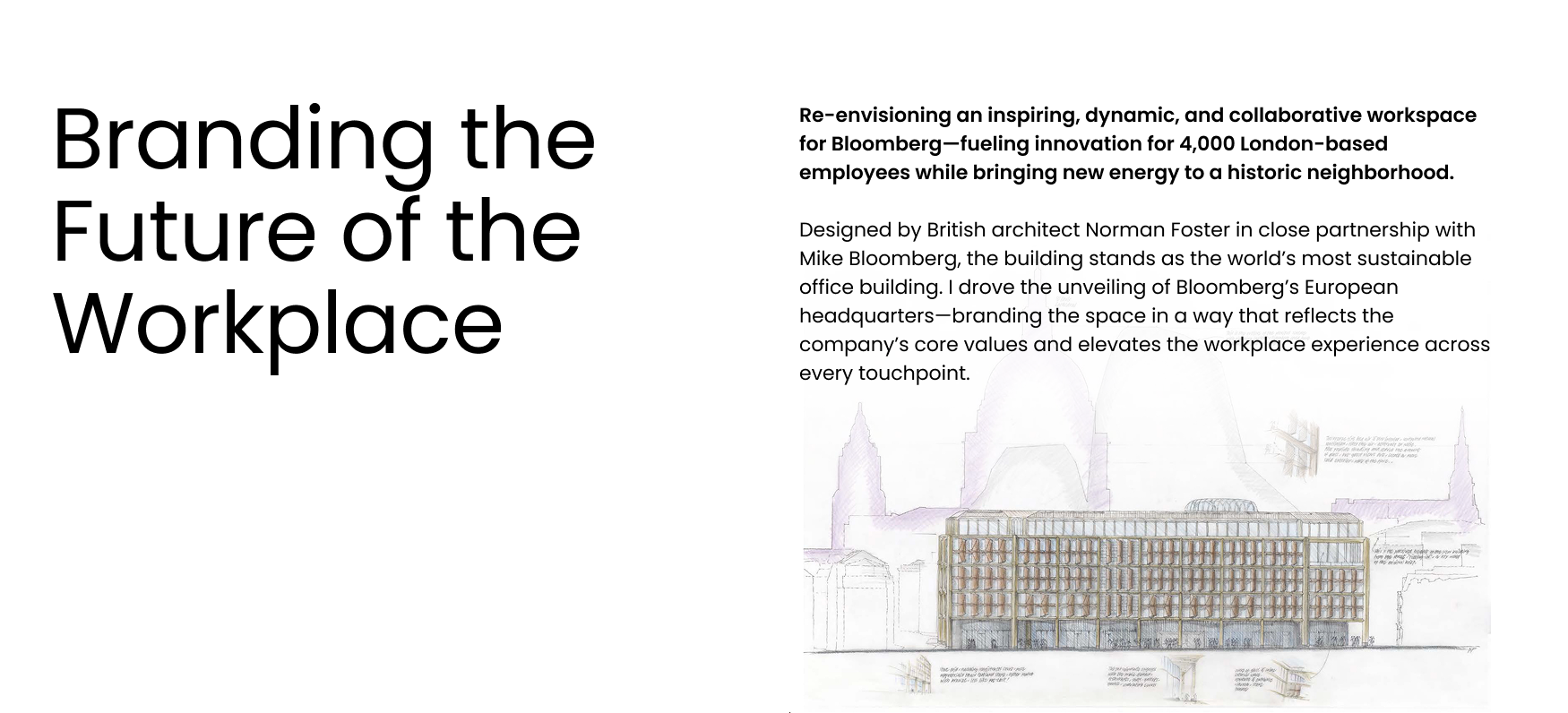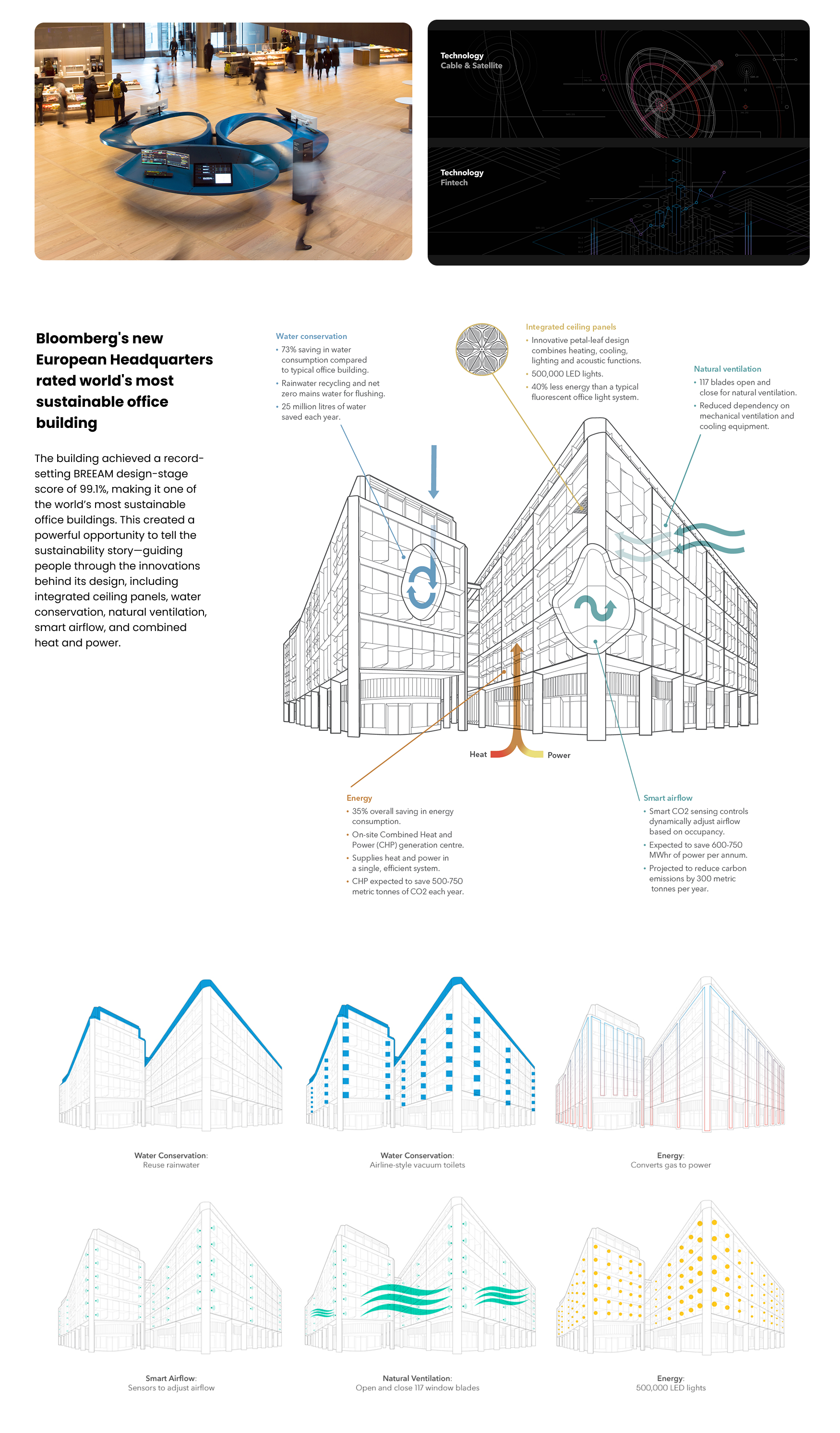 The building is Bloomberg’s first wholly owned and designed global headquarters—created to foster collaboration and fuel innovation. For the first time, it brings 4,000 London-based employees under one roof. A welcome kit introduced employees to the building’s sustainability, historical significance, and cultural context.
